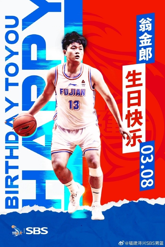 今天是翁金郎21岁生日,让我们一起祝福他生日快乐!2022年、2023年翁金郎两度入选U18国青男篮,并代表U18国青男篮征战国际比赛。2022年,翁金郎自福建浔兴青年队升至一队,正式征战CBA联赛。