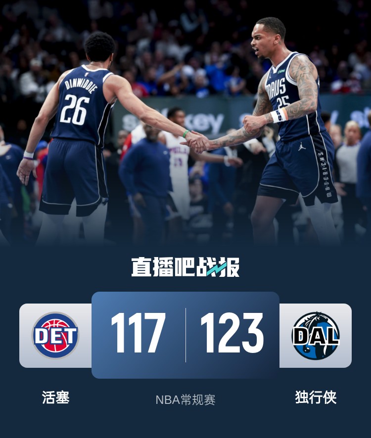 3月22日讯 NBA常规赛,独行侠主场迎战活塞。独行侠4连败后33胜37负西部第11,活塞2连胜后39胜31负东部第6。
