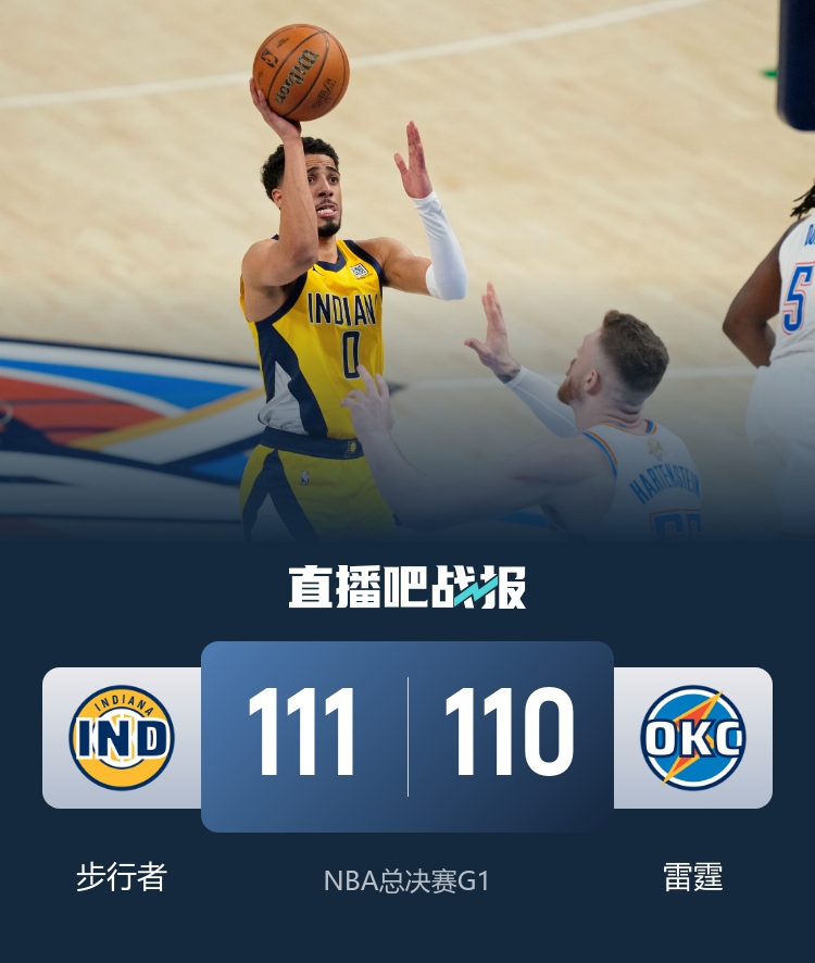 比赛上来,雷霆就把握住主场之势打出7-0的完美开局,好在是步行者连拿五分迅速回应并追到10-10平,不过他们并没能完成反超,分差在节末还是达到了两位数,次节步行者虽然有追分势头,但多特连中三分并且防守还有抢断送出,分差一直保持在十分左右,半场结束时步行者还落后12分;下半场回来,步行者终于找到进攻感觉,单节得分也是突破了三十分,不过雷霆依旧强势,分差始终保持在十分左右,末节步行者没有放弃,他们连续的三分将比分追了回来,紧要关头亚历山大未能打中,哈利伯顿命中几乎压哨长两分反超,雷霆仅剩0.3秒未能创造奇迹,最终步行者逆转险胜雷霆先拔头筹。