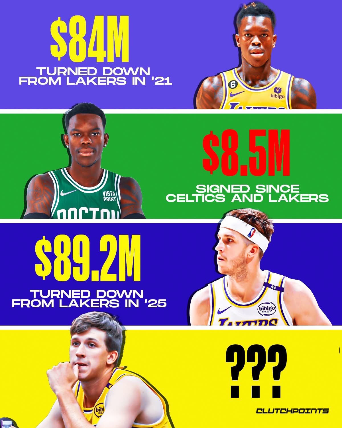 “历史在洛杉矶总以奇怪的方式重演。数年前,丹尼斯-施罗德拒绝湖人8400万续约报价,豪赌自己能够获得更大的合同。