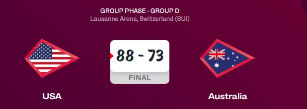 06月29日讯 U19世青赛小组赛,美国男篮88-73澳大利亚男篮。