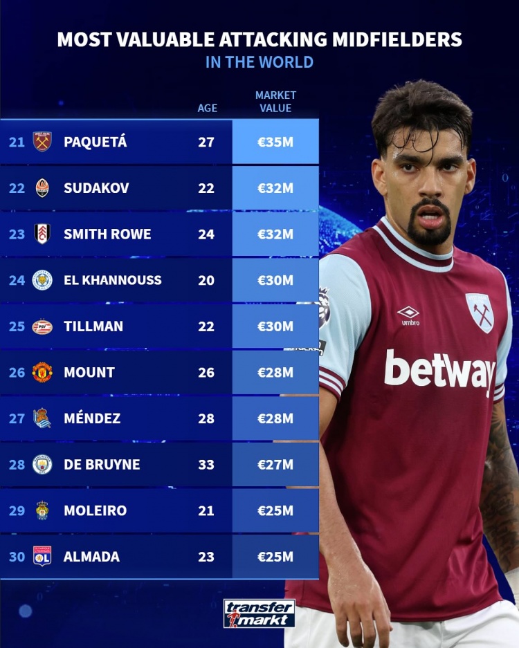 24、蒂尔曼(埃因霍温),22岁,3000万