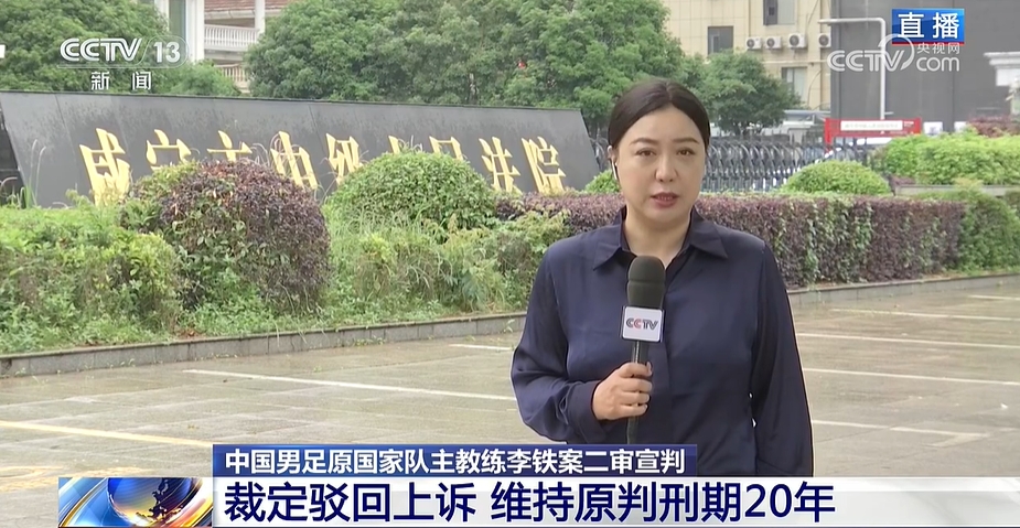 央视记者武兵:今天李铁二审宣判在8点半准时开始,因为没有控辩双方辩论的一个环节,所以一上来就宣读了判决书,驳回了李铁的全部上诉请求维持了原判,也就是说李铁会依法服刑20年。