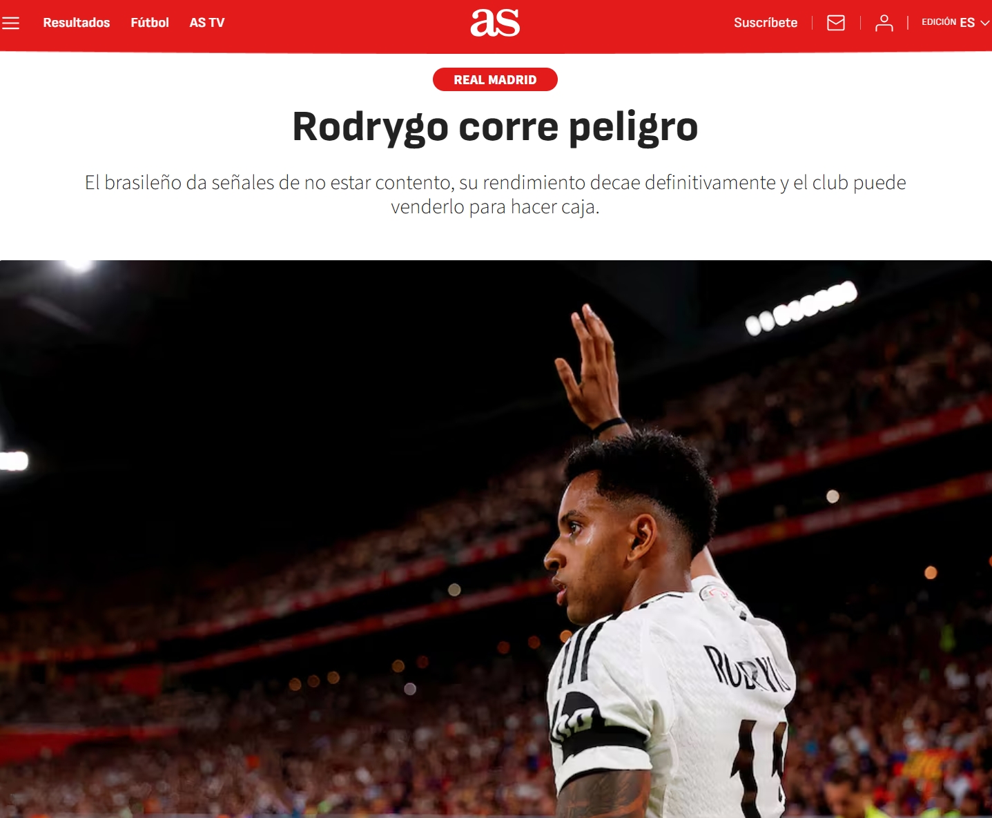 《阿斯报》认为,本赛季皇马的表现证明了前场四名球星无法维持球队的正常运转。一旦新帅入主,罗德里戈的出场顺位相较其他人将落于劣势。维尼修斯和姆巴佩如今占据进攻的绝对主导地位,皇马早早和前者续约更是表明俱乐部已做出选择。