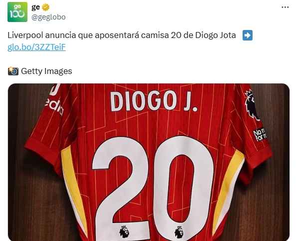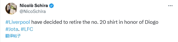 07月04日讯 利物浦官方发文悼念若塔,称他将永远被铭记,不少媒体球迷称利物浦将退役20号球衣,为不实报道。