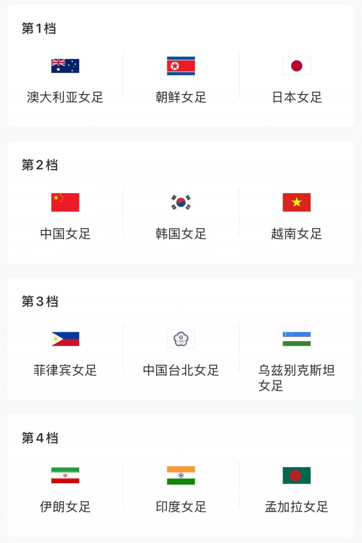 2026女足亚洲杯分档(按最新世界排名):
